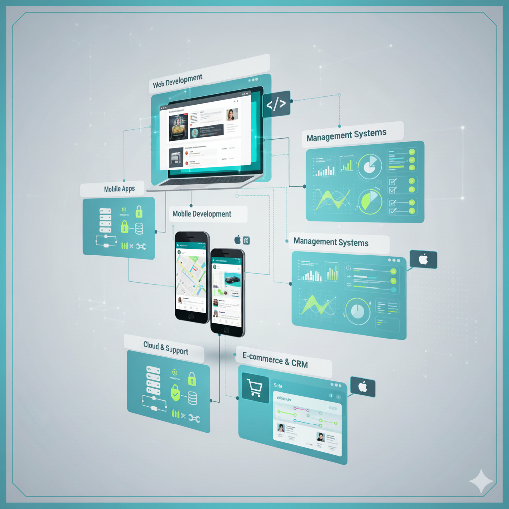 We deliver custom web platforms, mobile apps, CRMs, and management systems designed for real business operations. Our solutions are scalable, maintainable, and tailored to meet the unique requirements of diverse industries.